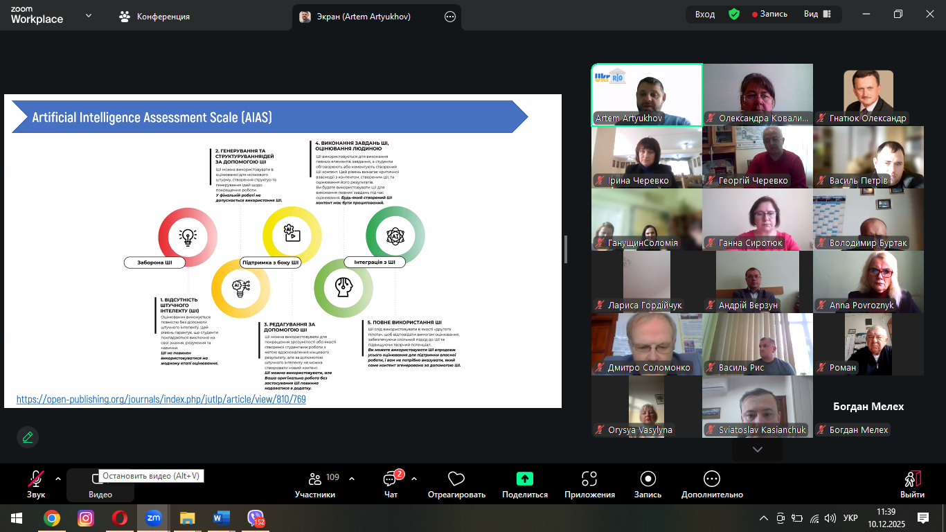 Дякуємо організаторам і спікеру за змістовний захід та можливість поглибити розуміння викликів і перспектив академічної доброчесності в умовах цифрової трансформації освіти.