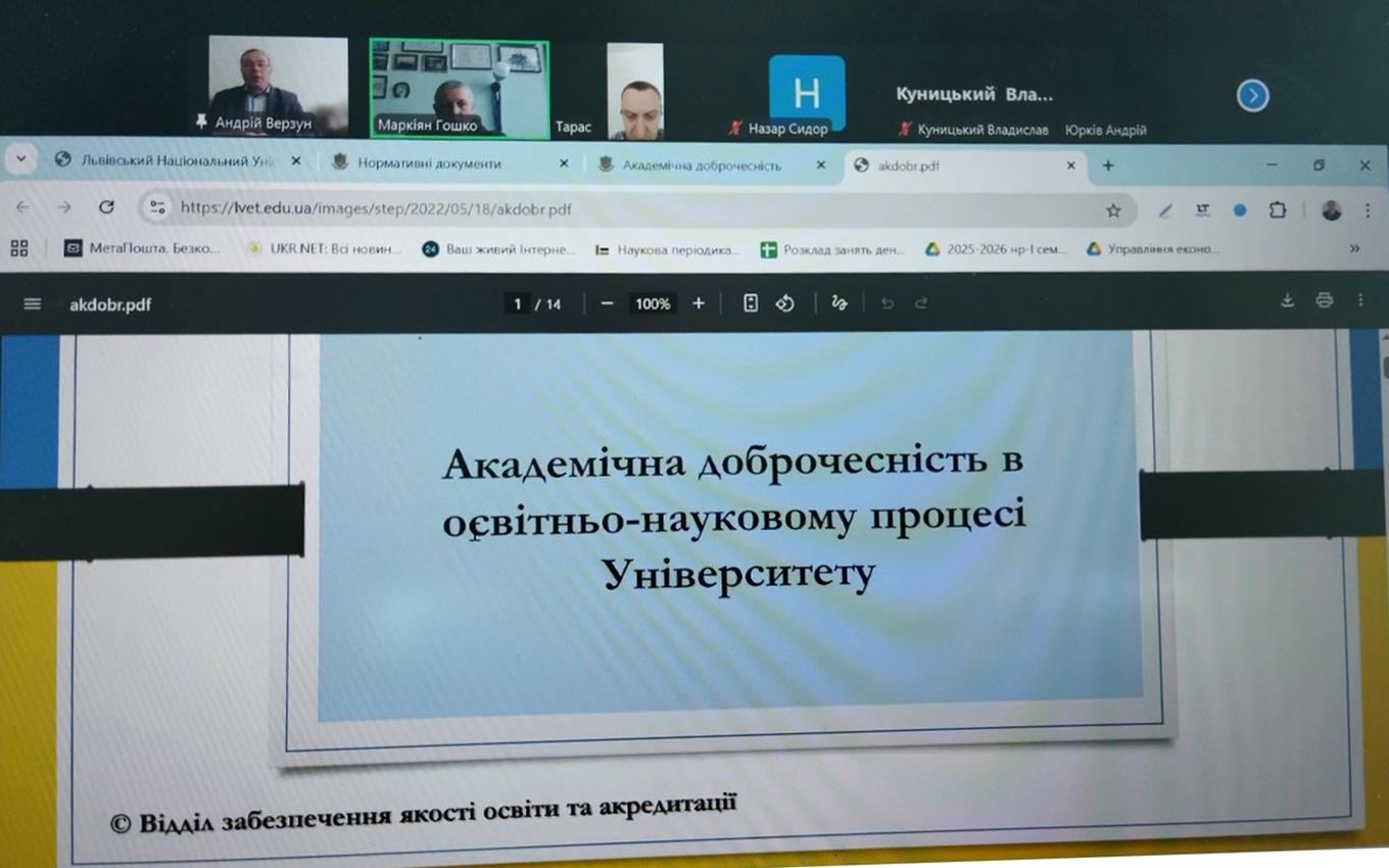 11 лютого 2026 року на факультеті механіки, енергетики та інформаційних технологій Львівського національного університету ветеринарної медицини та біотехнологій імені С.З. Ґжицького відбулася онлайн-зустріч керівника навчально-наукового центру організації та якості освітнього процесу, доцента Андрія Верзуна зі студентами першого (бакалаврського) та другого (магістерського) рівнів вищої освіти спеціальностей 141 «Електроенергетика, електротехніка та електромеханіка» та G3 «Електрична інженерія».