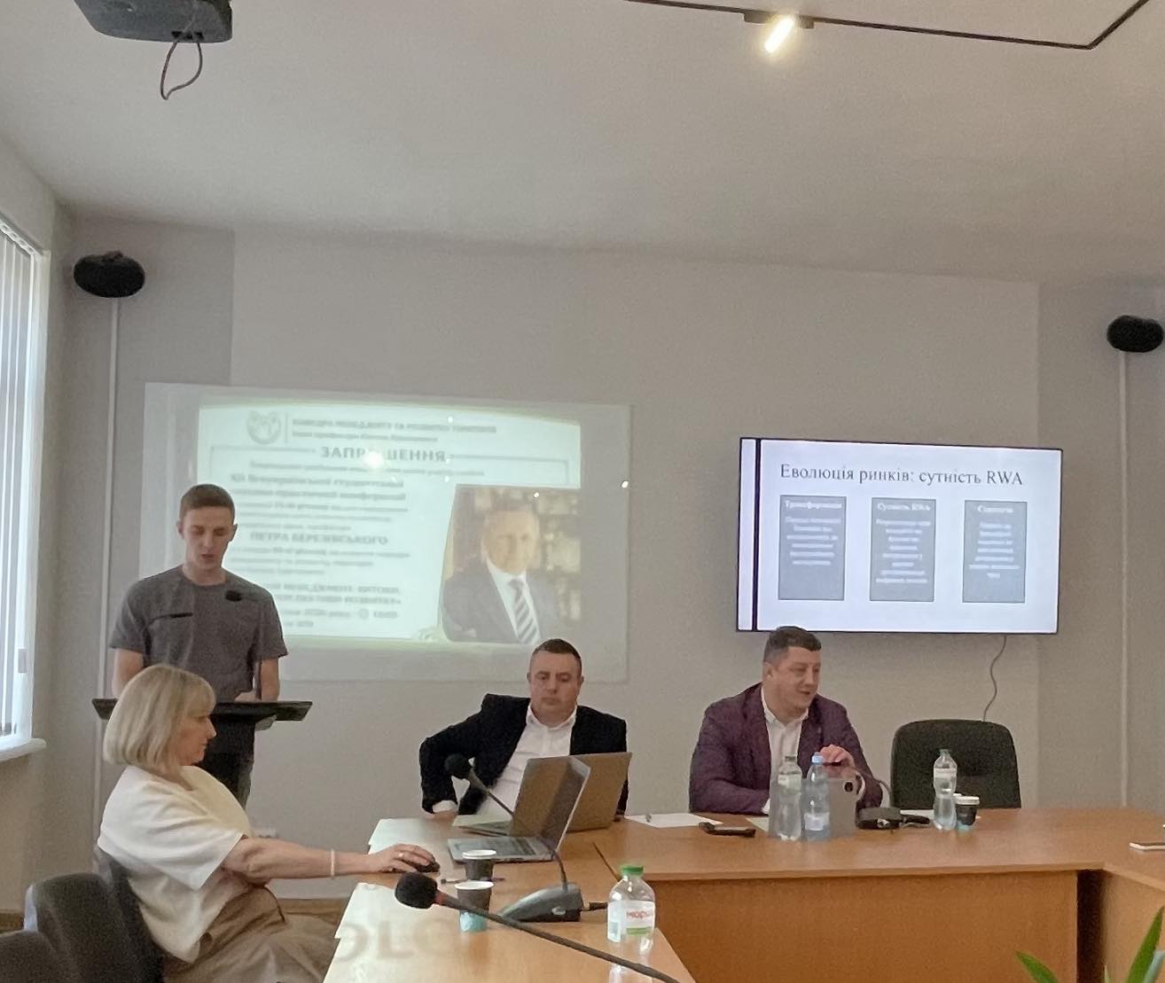 У межах конференції свою студентську наукову роботу презентував здобувач вищої освіти спеціальності D2 «Фінанси, банківська справа, страхування та фондовий ринок» Денис Винничак (науковий керівник – к.е.н., доцент Андрій Колодій) на тему «Токенізовані активи: глобальні тенденції та стратегічні перспективи для України».