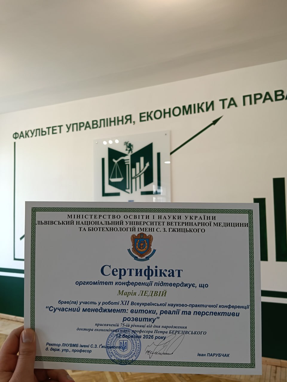 12 березня 2026 року на факультеті управління, економіки та права ЛНУВМБ імені С.З. Ґжицького відбулася XII Всеукраїнська студентська науково-практична конференція «Сучасний менеджмент: витоки, реалії та перспективи розвитку».