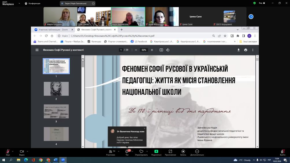 18 лютого 2026 року працівники Наукової бібліотеки ЛНУВМБ імені С.З. Ґжицького взяли участь у роботі круглого столу на тему «Актуальність ідей та творчості Софії Русової в XXI столітті» на запрошення Департаменту освіти і науки Львівської ОВА.