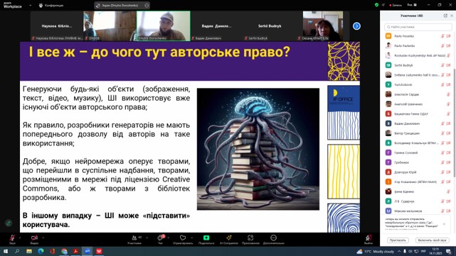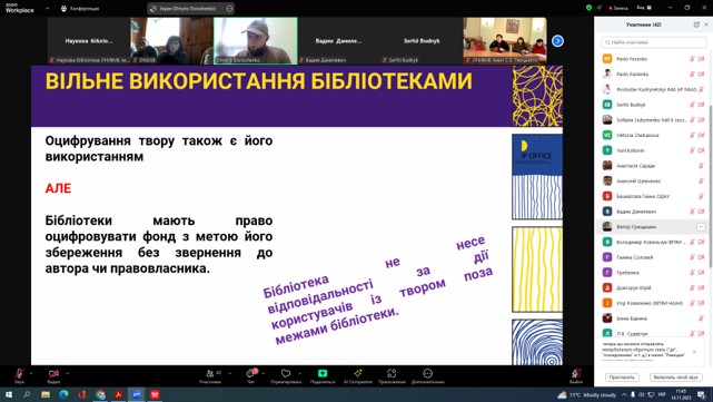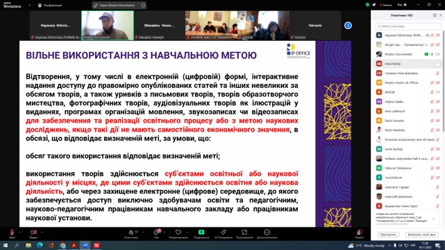 14 листопада 2025 року працівники Наукової бібліотеки ЛНУВМБ імені С.З. Ґжицького взяли участь у роботі круглого столу «Авторське право і суміжні права в інформаційно-комунікативній діяльності бібліотек: історія, сьогодення, майбутнє» за участю фахівців Державної організації «Український національний офіс інтелектуальної власності та інновацій» спільно з Національною науковою сільськогосподарською бібліотекою НААН.