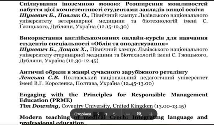 13 листопада 2025 року студентки Північного кампусу ЛНУВМБ імені Степана Ґжицького разом із професором кафедри іноземних мов Богданом Шуневичем представили дві доповіді під час пленарного засідання IV Міжнародної науково-практичної онлайн-конференції «Сучасні тенденції вивчення та навчання іноземних мов», організованої Полтавським державним медичним університетом.