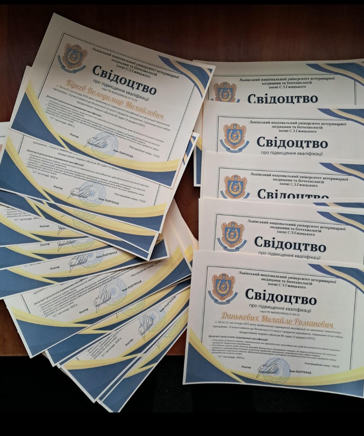 З 10 по 21 листопада на базі Центру перепідготовки та підвищення кваліфікації та факультету ветеринарної медицини Львівського національного університету ветеринарної медицини та біотехнологій імені С.З. Ґжицького відбулися курси підвищення кваліфікації за навчально-тематичною програмою «Сучасні вимоги до безпечності та якості продуктів харчування, отриманих після забою продуктивних тварин».