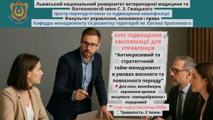 Центр перепідготовки та підвищення кваліфікації Львівського національного університету ветеринарної медицини та біотехнологій імені С.З. Ґжицького запрошує на курс підвищення кваліфікації для управлінців «Антикризовий та стратегічний тайм-менеджмент в умовах воєнного та повоєнного періоду».