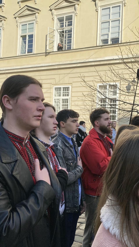 До урочистого спільного виконання Державного Гімну долучилися Народна хорова капела «Джерела Розточчя» під керівництвом Христини Венгрин та керівник відділу з організації навчально-виховної роботи студентів Софія Фаріон.