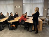 Євгенія Онишко ознайомила студентів із профілем діяльності підприємства, умовами проходження виробничих практик, а також можливістю навчання за дуальною формою освіти, де базовим підприємством виступатиме ТОВ «Крафт Інновейшн». Усіх зацікавлених було запрошено відвідати підприємство, щоб після ознайомлення з ним ухвалити рішення щодо проходження практики на його базі або переходу з наступного семестру на дуальну форму навчання.