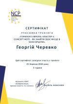 Д.е.н., проф., завідувач кафедри економіки Георгій Черевко 25 березня 2026 року взяв участь у тренінгу «Concept Note – як знайти своє місце в консорціумі», присвяченому трансформації наукових ідей у конкурентоспроможні проєктні пропозиції для програми «Горизонт Європа».
