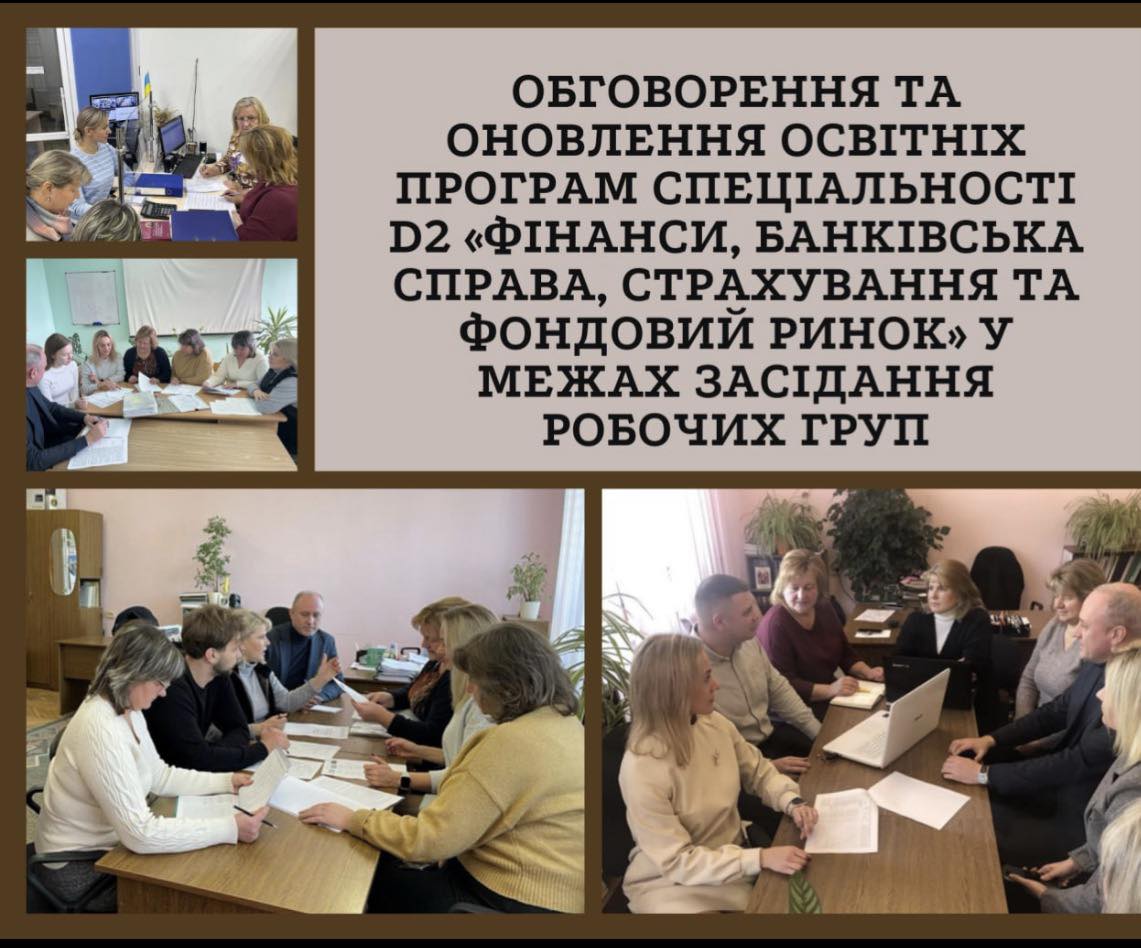 Упродовж грудня-лютого на кафедрі фінансів, банківської справи та страхування тривало активне обговорення оновлених проєктів освітніх програм. Завершальним етапом цього процесу стало підсумкове засідання робочих груп, присвячене обговоренню проєктів освітніх програм за спеціальністю D2 «Фінанси, банківська справа, страхування та фондовий ринок» першого (бакалаврського) та другого (магістерського) рівнів вищої освіти.