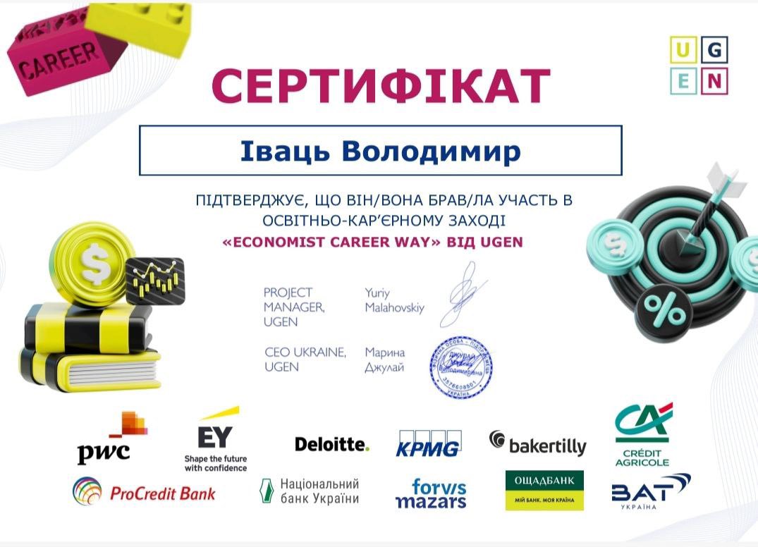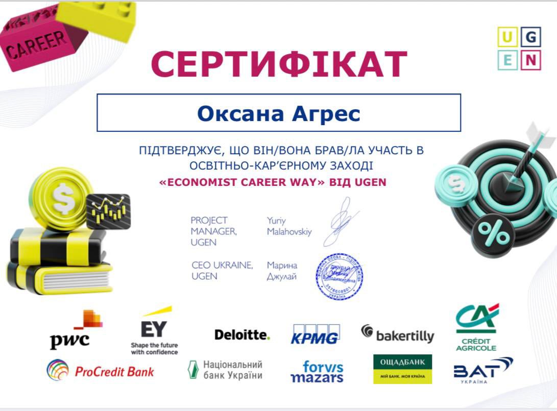 Дякуємо організаторам проєкту Economist Career Way від UGEN за ініціативність, професіоналізм і зусилля, завдяки яким студентам відкриваються реальні можливості для кар’єрного зростання та практичного застосування економічних знань. Ваш внесок надихає майбутніх фахівців і допомагає формувати міцні партнерські зв’язки між освітою та бізнесом.