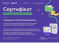 У фінальний день тестування студенти та викладачі кафедри пройшли онлайн-тест, перетворивши його на своєрідний «фінансовий челендж» та ще раз підкресливши, що фінансова освіта може бути цікавою, сучасною й практично орієнтованою. За активну участь та популяризацію фінансової грамотності представники кафедри отримали сертифікати амбасадорів фінансової грамотності від Національного банку України.