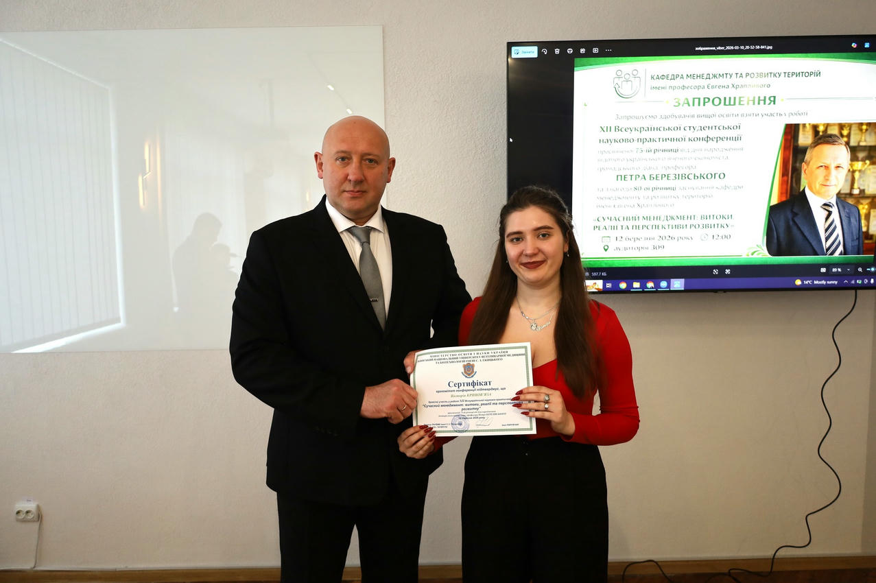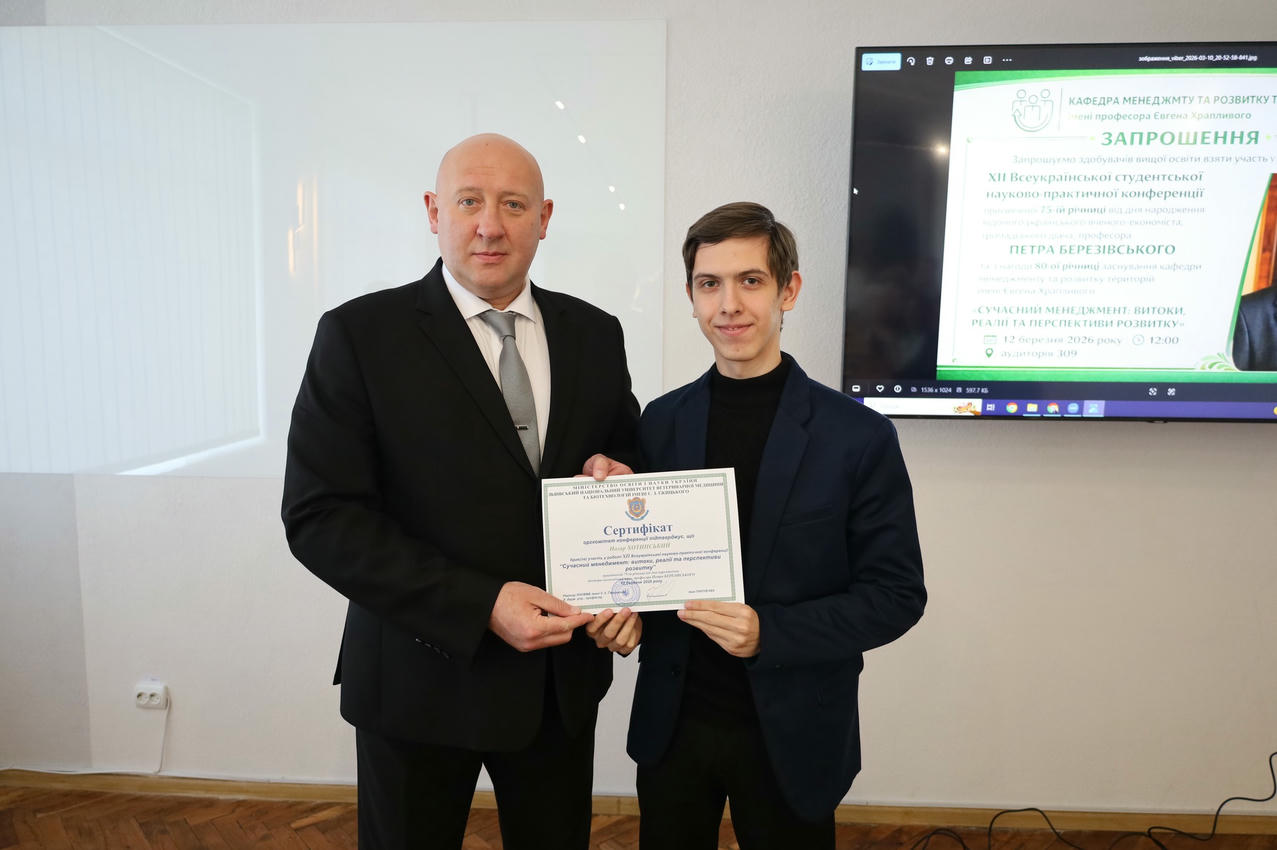 12 березня 2026 року на факультеті управління, економіки та права відбулася XII Всеукраїнська студентська науково-практична конференція «Сучасний менеджмент: витоки, реалії та перспективи розвитку».