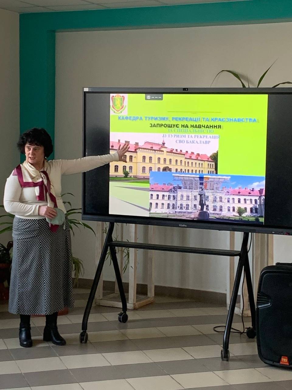Доцентка кафедри туризму, рекреації та краєзнавства Львівського національного університету ветеринарної медицини та біотехнологій імені С.З. Ґжицького Мирослава Стадник завітала до учнів середньої загальноосвітньої школи I–III ступенів № 31 м. Львова – говорили про майбутнє, професії (спеціальність «Туризм і рекреація») та трохи про мрії.