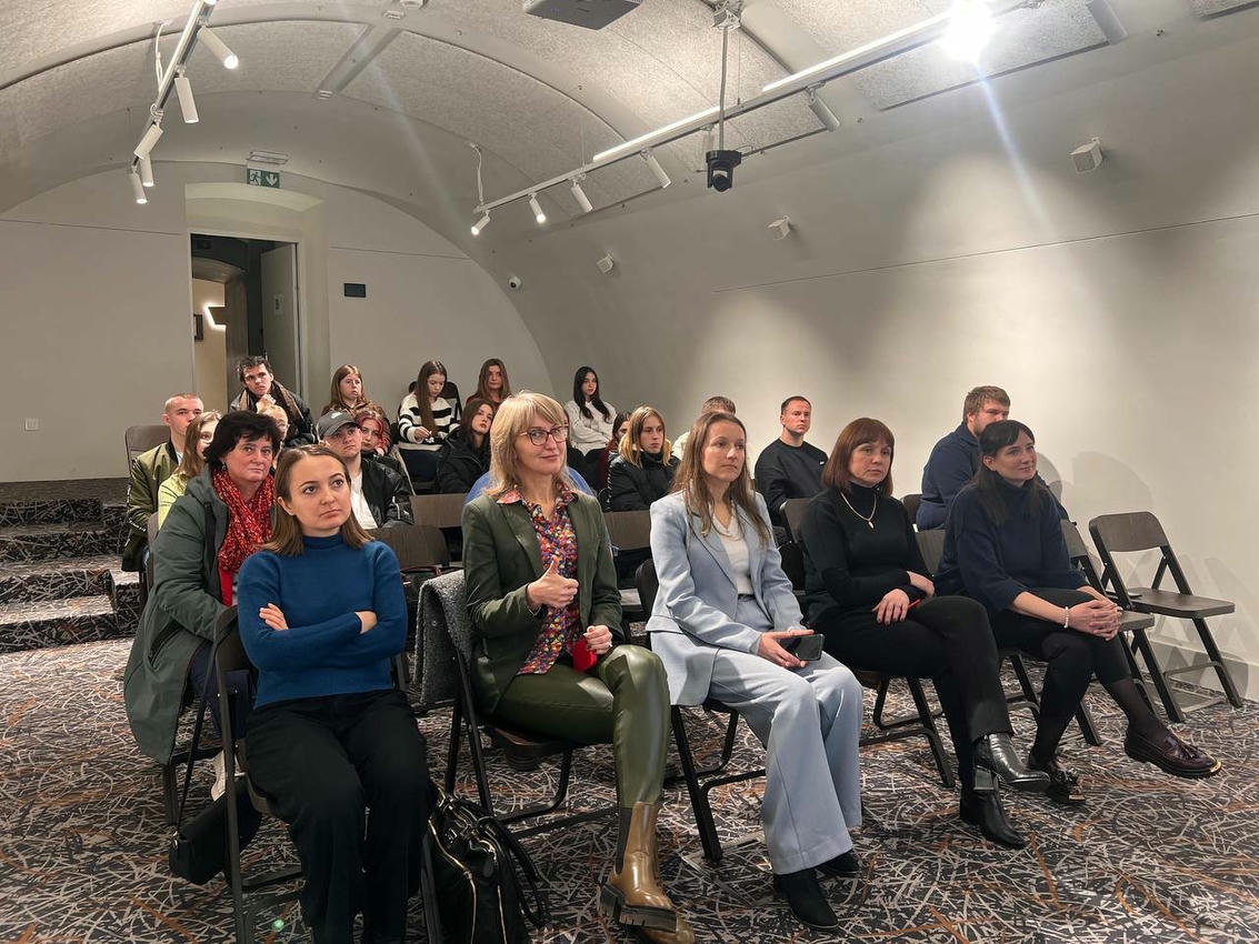 На завершення Світлана ТИМКІВ - координаторка освітніх програм MuMeet, контент менеджерка виставок, модераторка роботи волонтерів і стажерів музею розповіла про створення і діяльність Музею міста, про заплановані понад 140 заходів упродовж двох років, про нові ідеї, виставки, події MuMeet тощо. Також запросила присутніх долучатися до волонтерських проєктів, які дозволять попрактикуватися та здобути новий досвід. А ще запропонувала переглянути тимчасову виставку у приміщенні Музею. В умовах війни діяльність Музею обмежена, він також виконує роль укриття, але це не применшує його важливість.