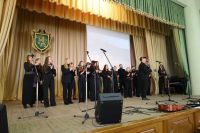Піснею «Україно» (сл. і муз. Т. Петриненка) усіх присутніх на цьому святі привітав соліст Народної хорової капели викладачів та співробітників університету Михайло Іващенко.