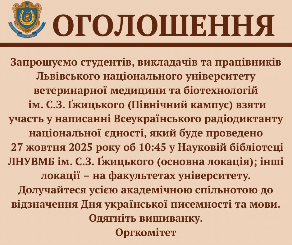 23 жовтня 2025 року у спортивному комплексі Північного кампусу Львівського національного університету ветеринарної медицини та біотехнологій ім. С.З. Ґжицького в Дублянах завирувала спортивна пристрасть. Саме тут відбулася Першість Львівської області серед закладів вищої освіти з вільної боротьби.