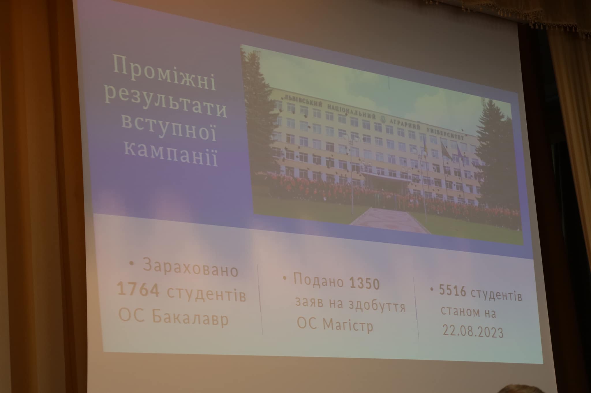 23 серпня 2023 року відбулось перше у новому навчальному році засідання Вченої ради Львівського національного університету природокористування. Розпочалось засідання з привітання ректора Володимира Снітинського з Днем Державного Прапора України, який є символом свободи і боротьби за незалежність, та урочистого внесення Прапора в актову залу університету.