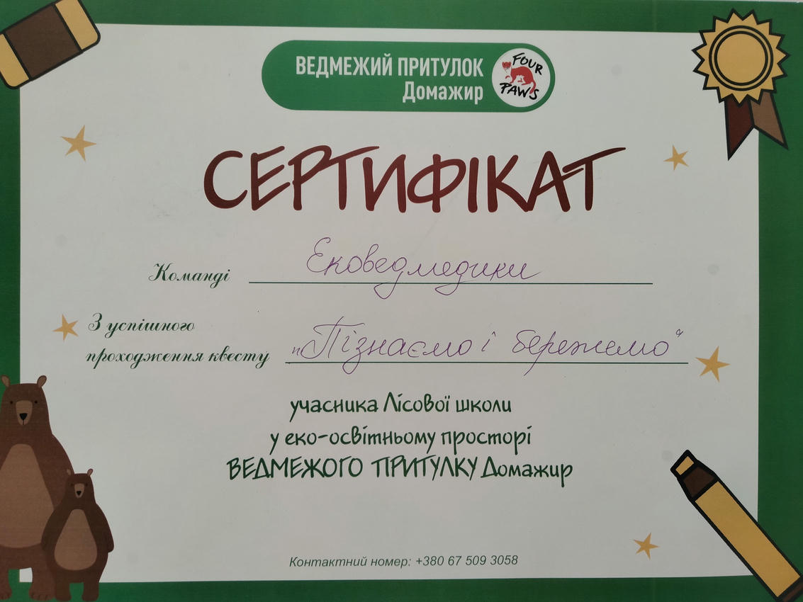 Вітаємо команду з перемогою та дякуємо організаторам з Ведмежого притулку «Домажир» за цікавий та корисний досвід!