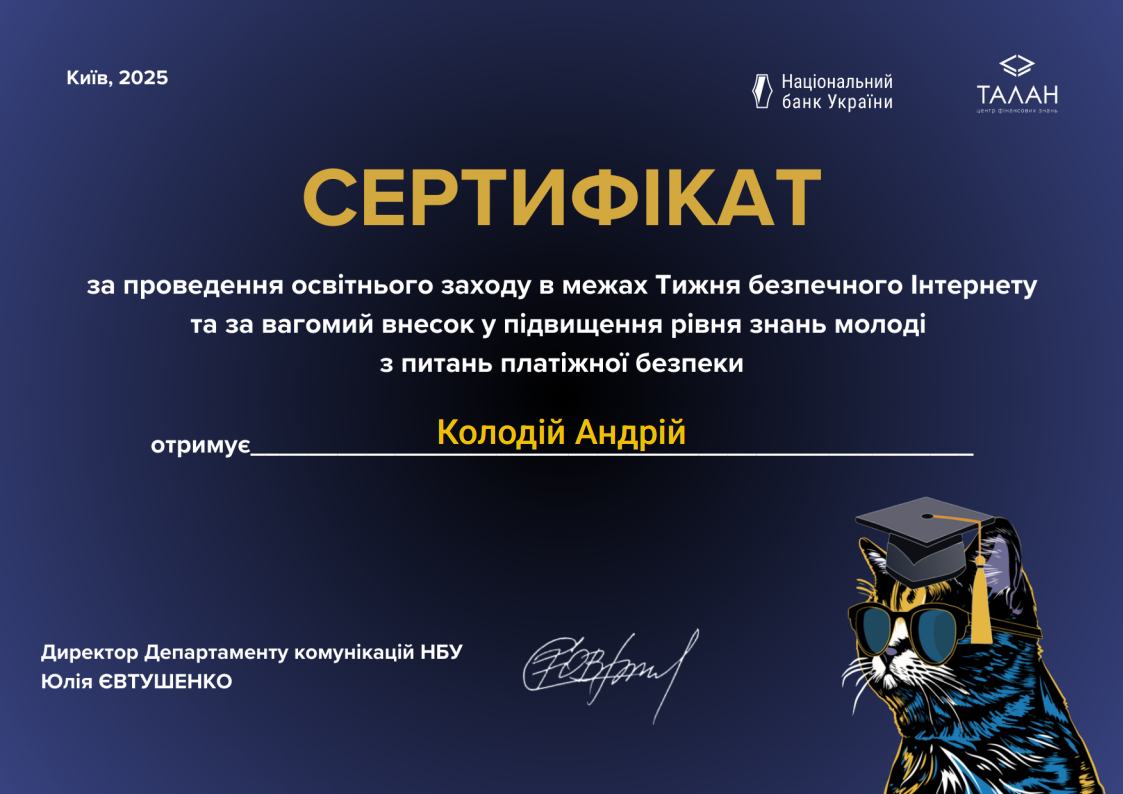 Особлива подяка організаторам заходу – Національному банку України та платформі «Талан» – за можливість долучитися до цього важливого проєкту та сприяти розвитку фінансової грамотності серед молоді.