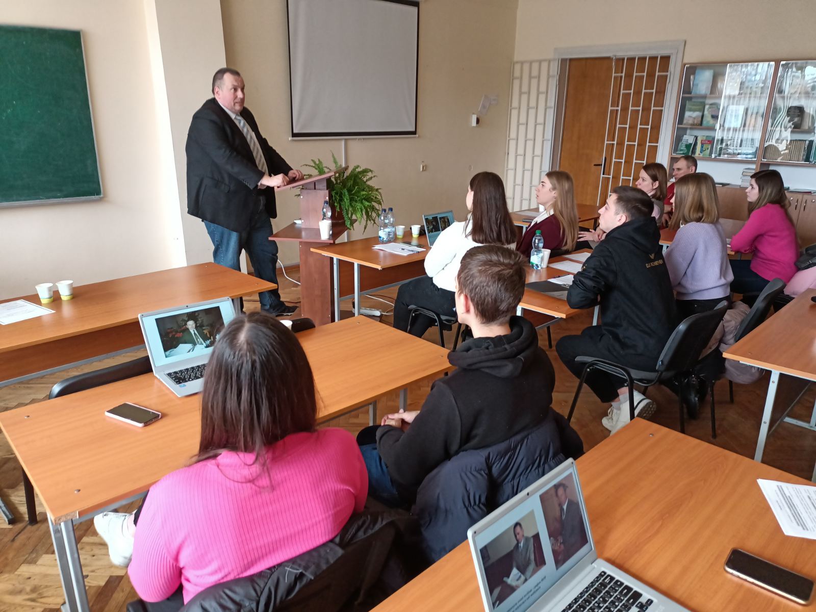9 березня 2023 р. Львівський національний університет природокористування відвідали учні Рава-Руського ОЗЗСО I-III ступенів № 1. Декан факультету управління, економіки та права, к.е.н., доцент Володимир Ковалів під час зустрічі з учнівською молоддю охарактеризував особливості освітнього процесу на факультеті та в університеті загалом.