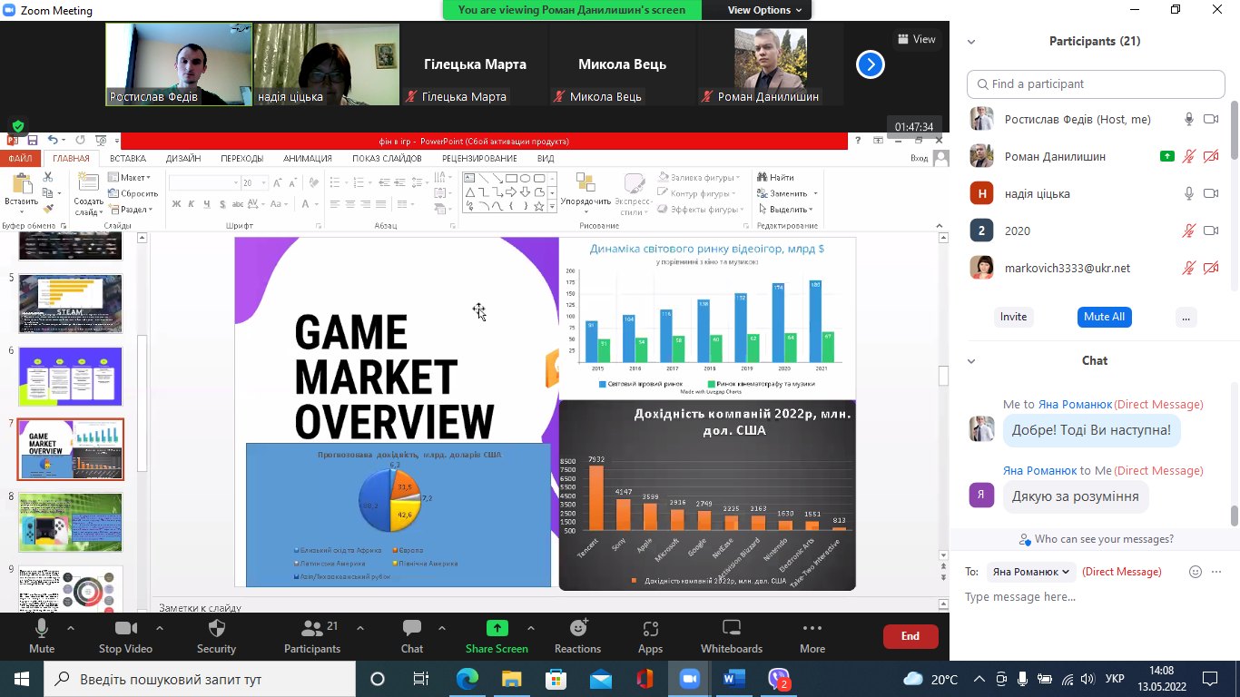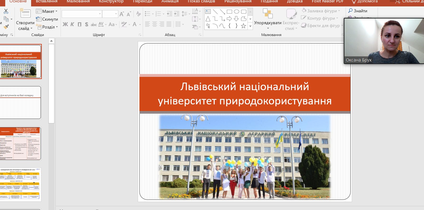 13 травня 2022 року у рамках роботи Наукового товариства студентів, аспірантів, докторантів та молодих вчених факультету управління, економіки та права Львівського національного університету природокористування відбулось онлайн-засідання Звітної студентської наукової конференції за результатами досліджень у 2021 році студентів факультету управління, економіки та права ЛНУП.