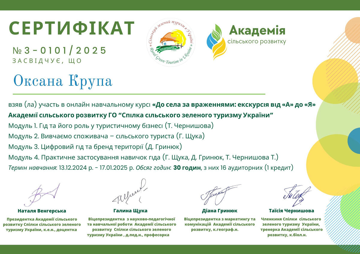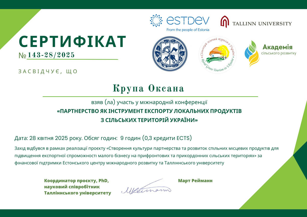 - Популяризація сільського зеленого туризму як чинника розвитку туристично-рекреаційного потенціалу дестинації (Боруцька Ю.З., Крупа О.М., Бугіль С.Я., Березівська О.Й., Дидів І.Б.);