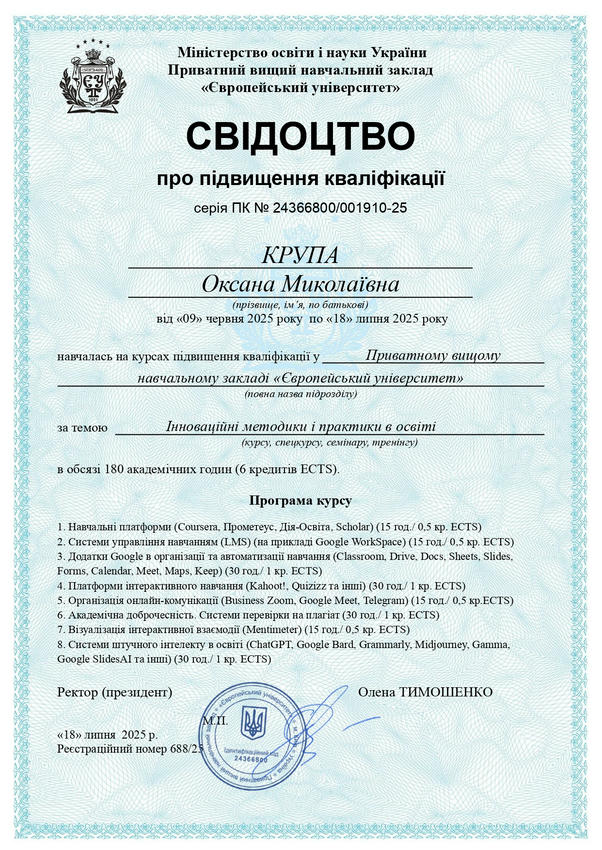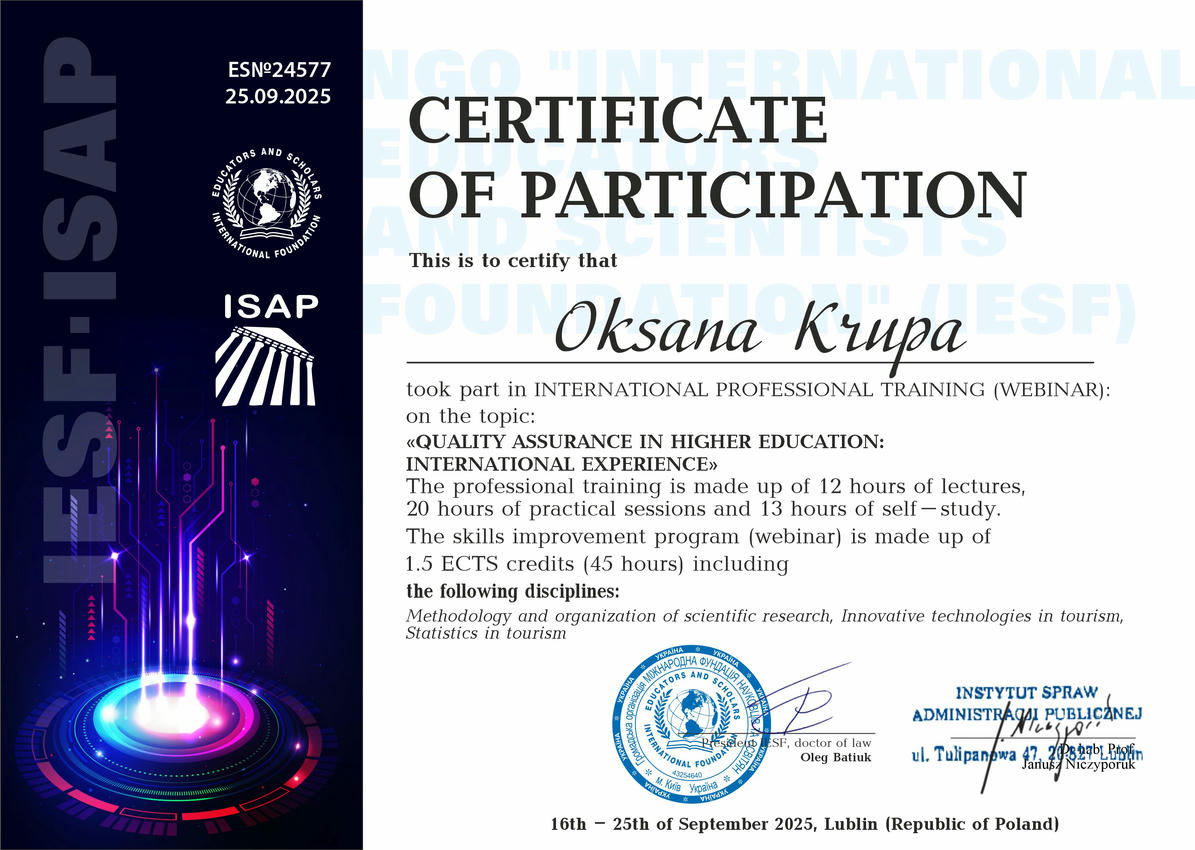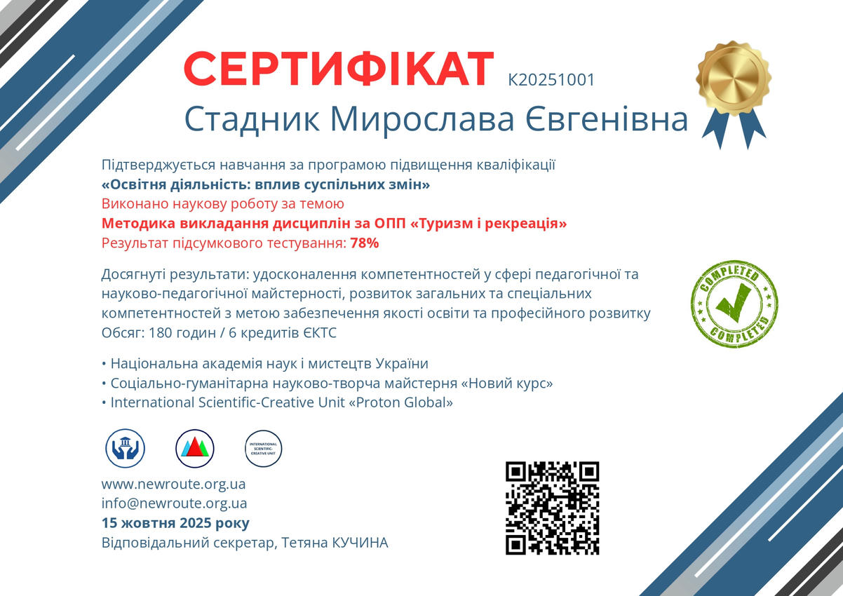 - Дослідження туристично-краєзнавчих особливостей регіонів України та національно-патріотичне виховання в контексті глобальних викликів (Мальська М.П., Боруцька Ю.З., Крупа О.М., Іванюк П.В.);