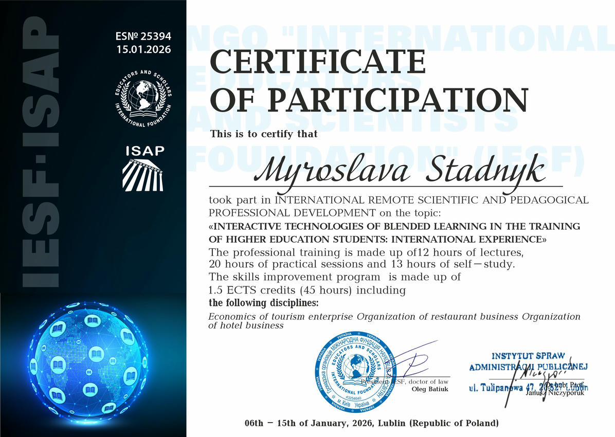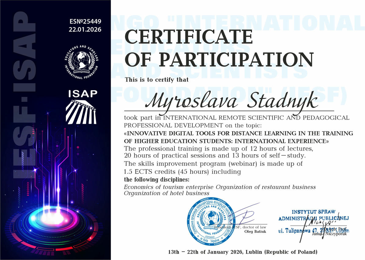 - Інноваційні технології в туризмі та індустрії гостинності (Мальська М.П., Крупа О.М., Березівська О.Й., Бугіль С.Я.);