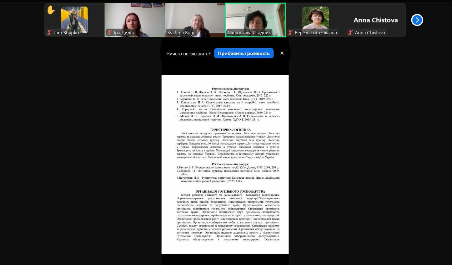 Присутнім було продемонстровано Програму атестації здобувачів вищої освіти у формі атестаційного екзамену, а також перелік питань. Завідувачка кафедри туризму, рекреації та краєзнавства Оксана Крупа наголосила на важливості програми атестації, яка містить анотації освітніх компонентів, перелік винесених питань, рекомендовану літературу.