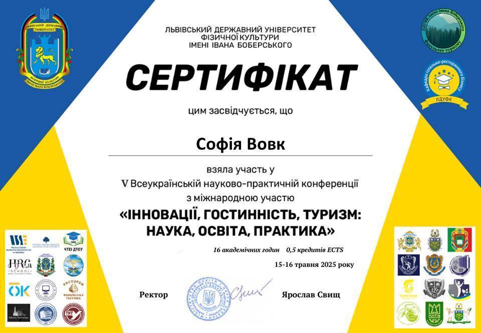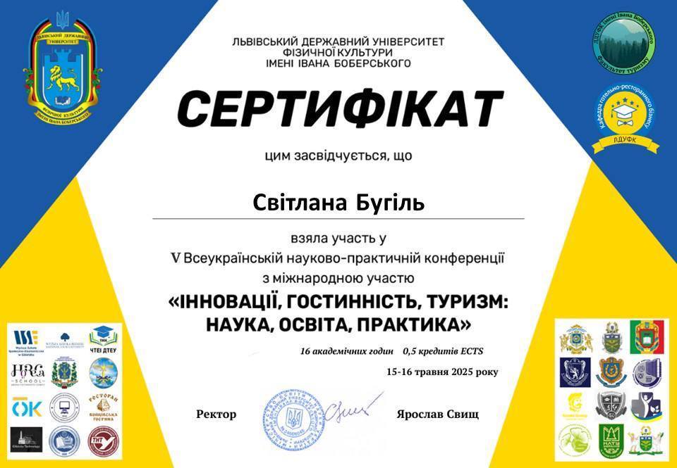Участь студентсько-викладацької спільноти кафедри туризму, рекреації та краєзнавства у V всеукраїнській науково-практичній конференції молодих учених з міжнародною участю «Інновації, гостинність, туризм: наука, освіта, практика»..!