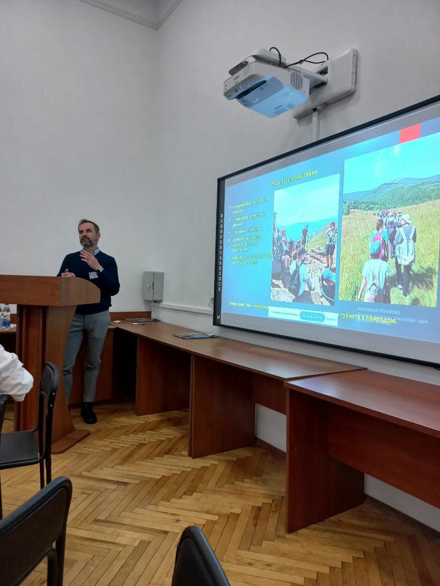Серед різноманітних виступів українських та закордонних учасників була відмічена доповідь старшого викладача кафедри Павла Іванюка на тему «Особливості екскурсійного супроводу у гірських турах». Його презентація вирізнялася тим, що містила слайди з власних ситуацій і прикладів як професійного екскурсовода та гірського провідника.
