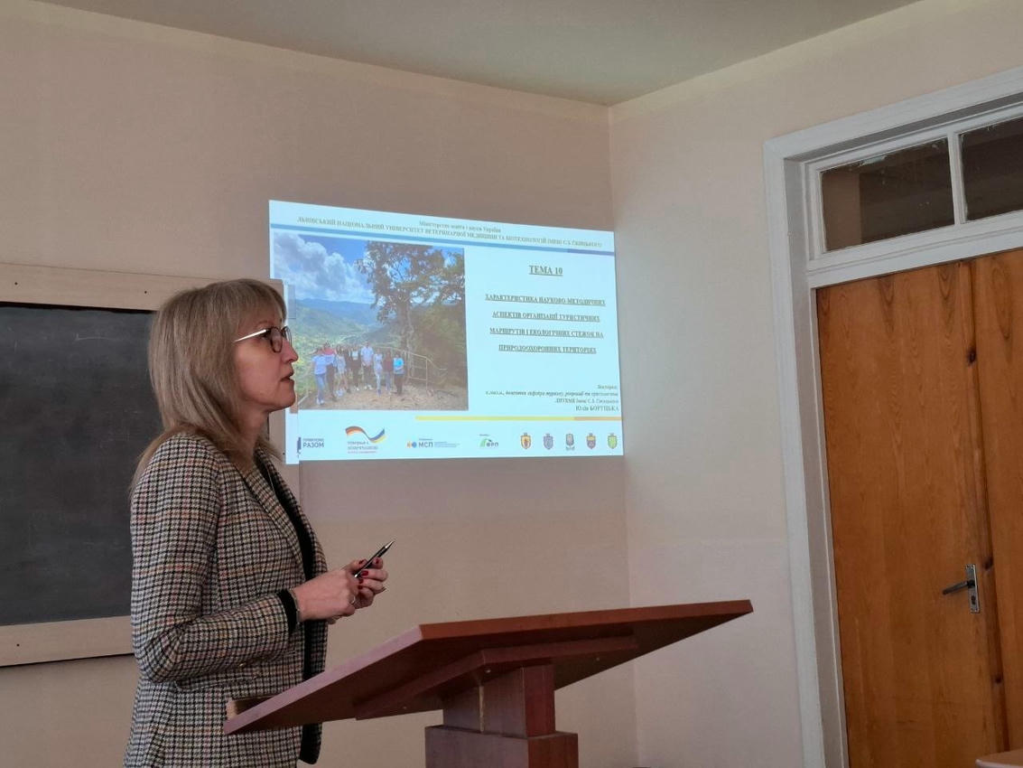 18 березня 2025 року, доцентка кафедри туризму, рекреації та краєзнавства ЛНУВМБ імені С.З. Гжицького Юлія БОРУЦЬКА провела відкриту лекцію для здобувачів вищої освіти групи Тур-21, Тур-22сп спеціальності 242 Туризм і рекреація СВО Бакалавр із дисципліни «Туризм на природоохоронних територіях» на тему: «Характеристика науково-методичних аспектів організації туристичних маршрутів і екологічних стежок на природоохоронних територіях».