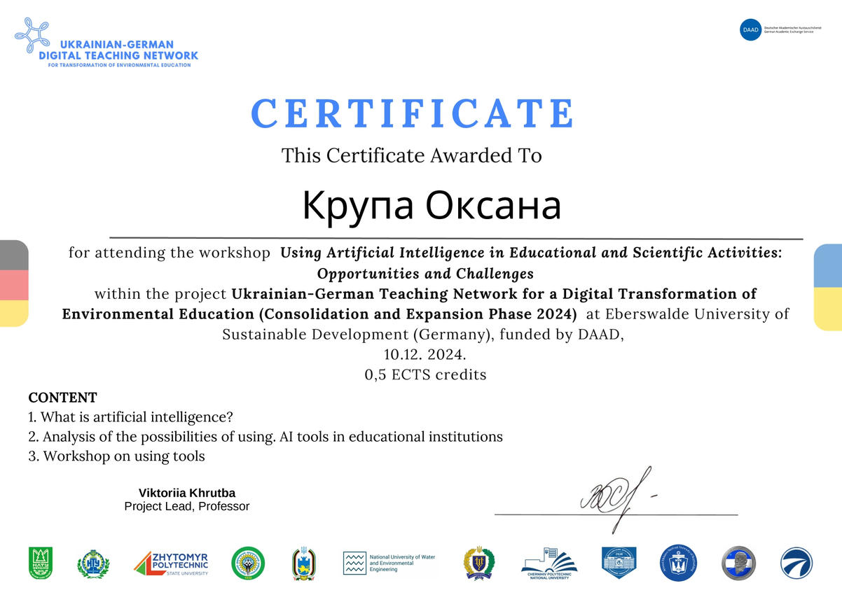 Проєкт Ukrainian-German Teaching Network for a Digital Transformation of Environmental Education (Consolidation and Expansion Phase 2024).