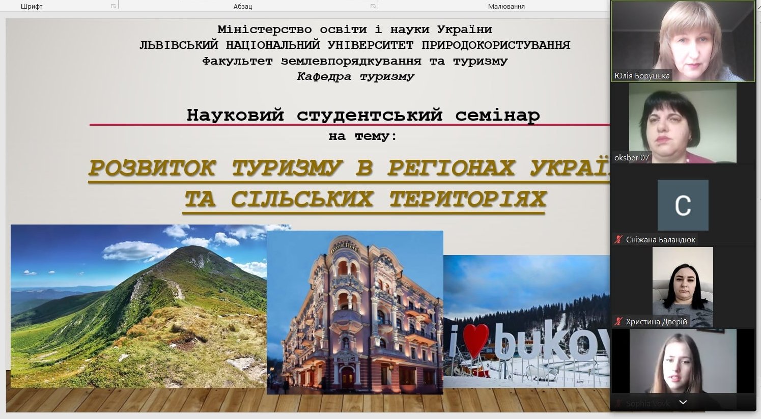 «Активність здобувачів вищої освіти спеціальності 242 Туризм і рекреація у міжнародних проєктах», 15 листопада 2024 р.;