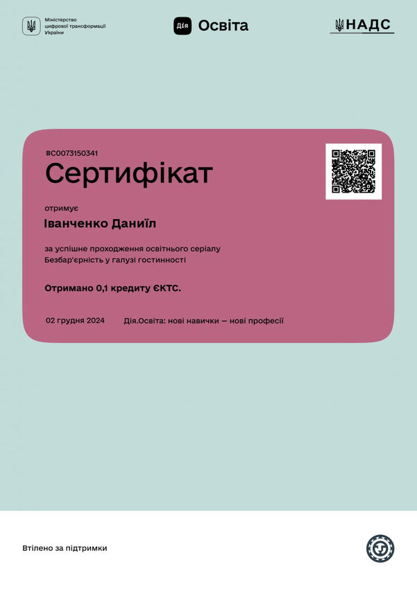 Здобувачі вищої освіти спеціальності 242 Туризм і рекреація, у контексті неформальної освіти, активно проходять курси з отриманням підтверджуючих сертифікатів на всесвітньо- та загальновідомих платформах PROMETEHUS, ДІЯ.ОСВІТА та інших, обираючи наступну актуальну тематику:
