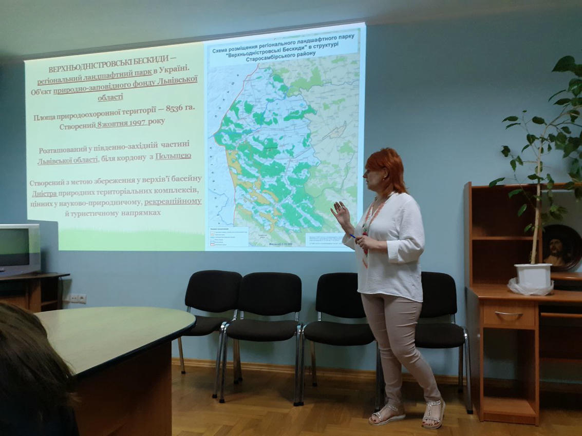 2 червня 2023 року відбулась гостьова лекція з стейкхолдером Наталією Олійник – директоркою Регіонального ландшафтного парку «Верхньодністровські Бескиди». Лекторка поділилася власними напрацюваннями, багато уваги зосередила щодо розвитку туристично-рекреаційної сфери на територіях і об’єктах природно-заповідного фонду України загалом і Львівщини зокрема, навела приклади практичної діяльності очолюваного нею РЛП «Верхньодністровські Бескиди», акцентувала увагу здобувачів освіти на перспективності обраного фаху.