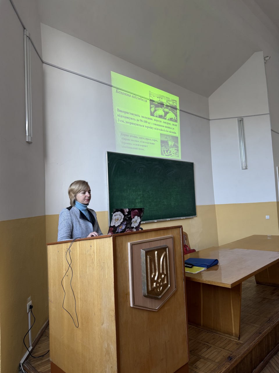 6 березня 2026 року на кафедрі основ тваринництва імені Гната Западнюка в.о. завідувача кафедри, доктор ветеринарних наук, професор Наталія Зіновіївна Огородник провела відкрите лекційне заняття для студентів першого курсу груп Аг-11, Аг-12, Аг-13 і Аг-14 з навчальної дисципліни «Тваринництво». Темою лекції були «Технології виробництва продукції свинарства». На занятті були присутні в.о. доцента Віталій Мирославович Ткачук, доцент Сергій Ярославович Павкович, доцент Іван Франкович Дудар, в.о. доцента Маркіян Іванович Рацький та провідний фахівець Віра Ярославівна Якимець.