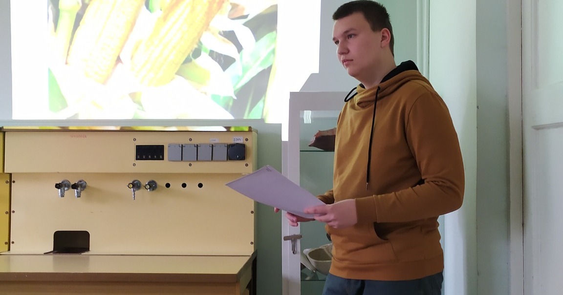 Вихованець Андріївського ЗЗСО, а сьогодні найактивніший студент наукового гуртка «Сучасні технології у тваринництві і кормовиробництві» Андрій Дроздовський із власного досвіду поділився з присутніми усіма тонкощами здобуття фаху агронома та розповів про переваги навчання в університеті й широкі можливості для працевлаштування.