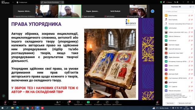 14 листопада 2025 року працівники Наукової бібліотеки ЛНУВМБ імені С.З. Ґжицького взяли участь у роботі круглого столу «Авторське право і суміжні права в інформаційно-комунікативній діяльності бібліотек: історія, сьогодення, майбутнє» за участю фахівців Державної організації «Український національний офіс інтелектуальної власності та інновацій» спільно з Національною науковою сільськогосподарською бібліотекою НААН.