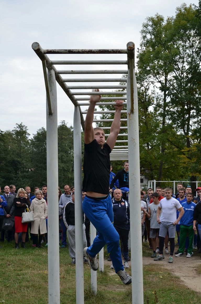 В підтягуванні на поперечині від кожної команди взяли участь п’ять осіб, серед яких один викладач. Перше місце виборола команда факультету будівництва та архітектури, яка в сумі підтягнулась 121 раз. Абсолютний рекорд встановив студент цього факультету Богдан Пушкарук, який підтягнувся 37 разів. Друге місце в цьому виді програми посіла команда економічного факультету – 100 підтягувань, на третьому місці з результатом 96 підтягувань – команда факультету механіки та енергетики. Доцент факультету механіки та енергетики М.О. Гошко з результатом 20 підтягувань був кращим серед професорсько-викладацького складу.