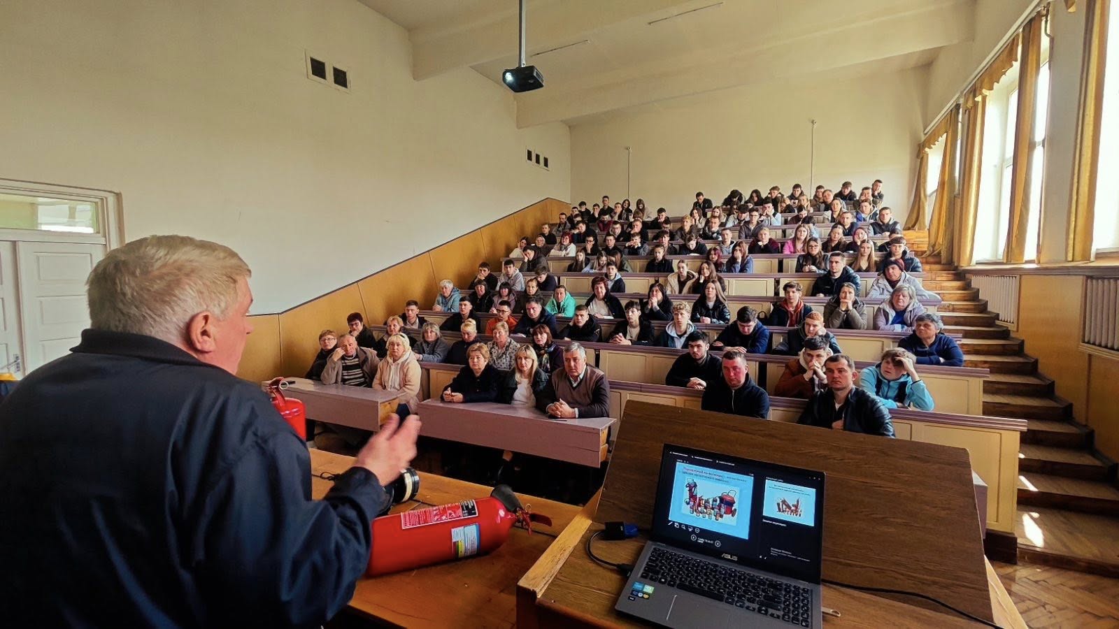 Практичний етап дозволив закріпити здобуті знання: присутні відпрацювали навички ліквідації умовного загоряння, використовуючи вуглекислотні та порошкові вогнегасники. Важливою складовою навчань стало відпрацювання евакуації мешканців гуртожитку №6. За підтримки представників рятувальних служб та пожежного підрозділу було продемонстровано складний алгоритм порятунку постраждалого через вікно із застосуванням спеціального обладнання.
