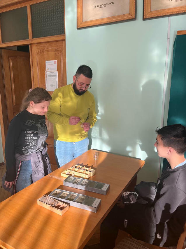 Викладачі кафедри знайомили гостей з унікальними експонатами музейної колекції. Особливе враження справили вулканічна лава, обсидіан, рожевий корунд, польові шпати та малахіт, кожен із яких розповідав свою власну історію про еволюцію Землі. Учні та студенти вперше тримали в руках справжні уламки давніх магматичних порід, досліджували їхню структуру та блиск, порівнювали кольори мінералів і ділилися здивованими коментарями. Гості захоплено розглядали ґрунтові моноліти музею ґрунтів імені Г.О. Андрущенка, які наочно демонструють складну будову ґрунтових горизонтів і різноманітність ґрунтових типів. Під час інтерактивних демонстрацій учні вчилися розпізнавати основні типи ґрунтів, визначати вміст карбонатів, оцінювати фізико-хімічні властивості мінеральної сировини та зрозуміли, як ці знання впливають на їх практичне використання. Особливе захоплення викликала демонстрація того, як за допомогою моделей та зразків можна «відтворити» історію утворення ґрунтів у різних кліматичних умовах та регіонах світу. Це була справжня подорож у часі й просторі, що розкривала таємниці, які зберігає Земля.