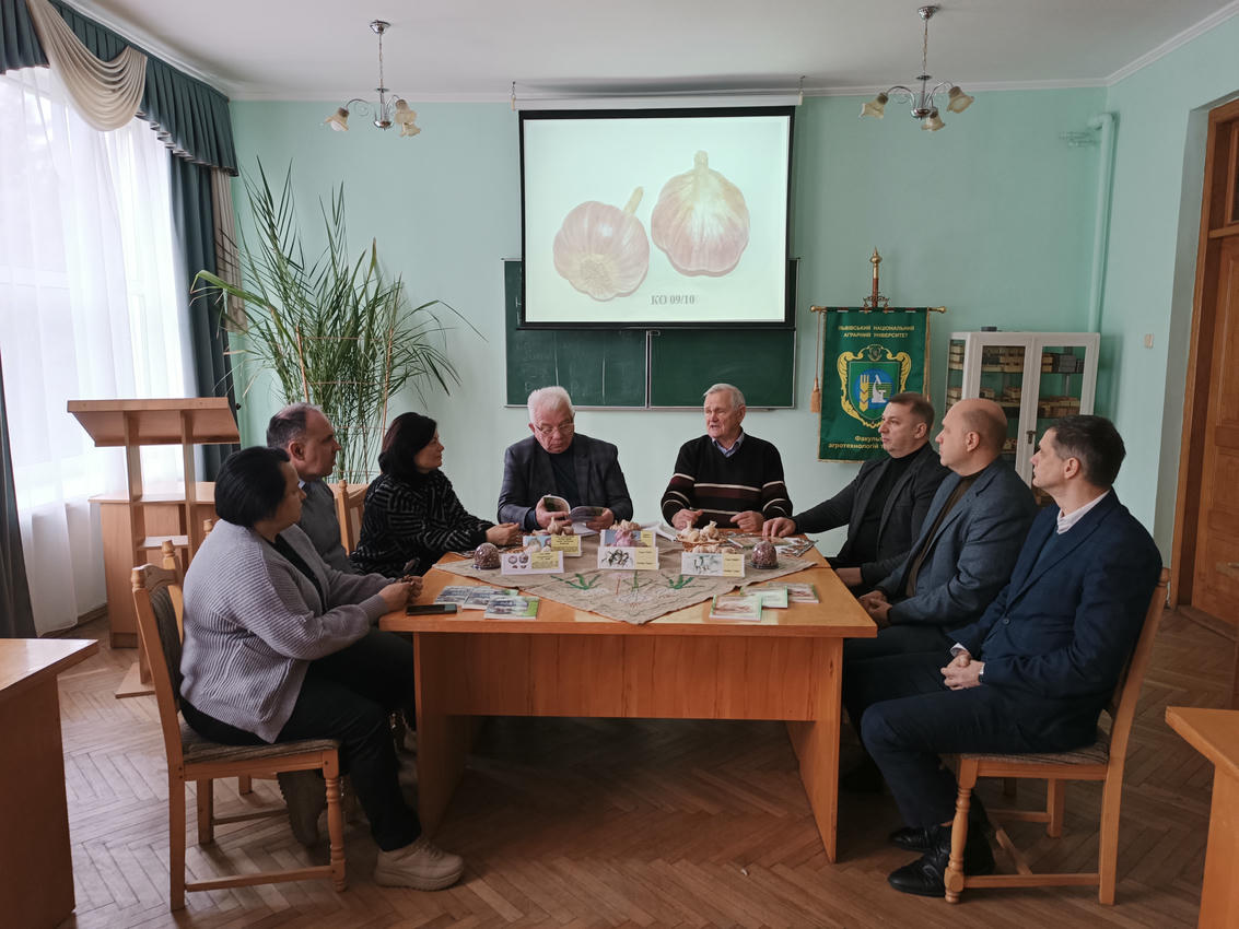 Під час обговорення короткого звіту за результатами виконаної роботи, який представив керівник теми доцент Володимир Борисюк, було акцентовано, що на теренах України наш університет є єдиним центром генофонду екологічних форм часнику, який посідає чільне місце у формуванні високоякісного вихідного матеріалу. Окрім цього, колекція генофонду є основним донором багатьох господарсько-цінних ознак і базою для спільних досліджень із провідними науковими установами світу, зокрема з Державою Ізраїль.