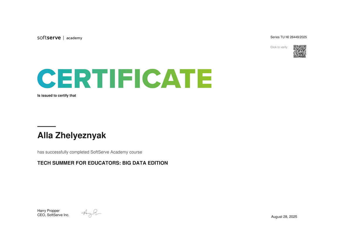 Особливістю початку 2025–2026 н.р. стало те, що доцент кафедри ІТ, гарант ОП «Інформаційні системи та технології» А.М. Желєзняк взяла участь у спеціалізованому навчанні та пройшла сертифікований курс від Національного агентства кваліфікацій на тему «Професійні та освітні кваліфікації: актуальні методологічні підходи для закладів вищої освіти», який тривав з 22 вересня по 17 жовтня 2025 року.
