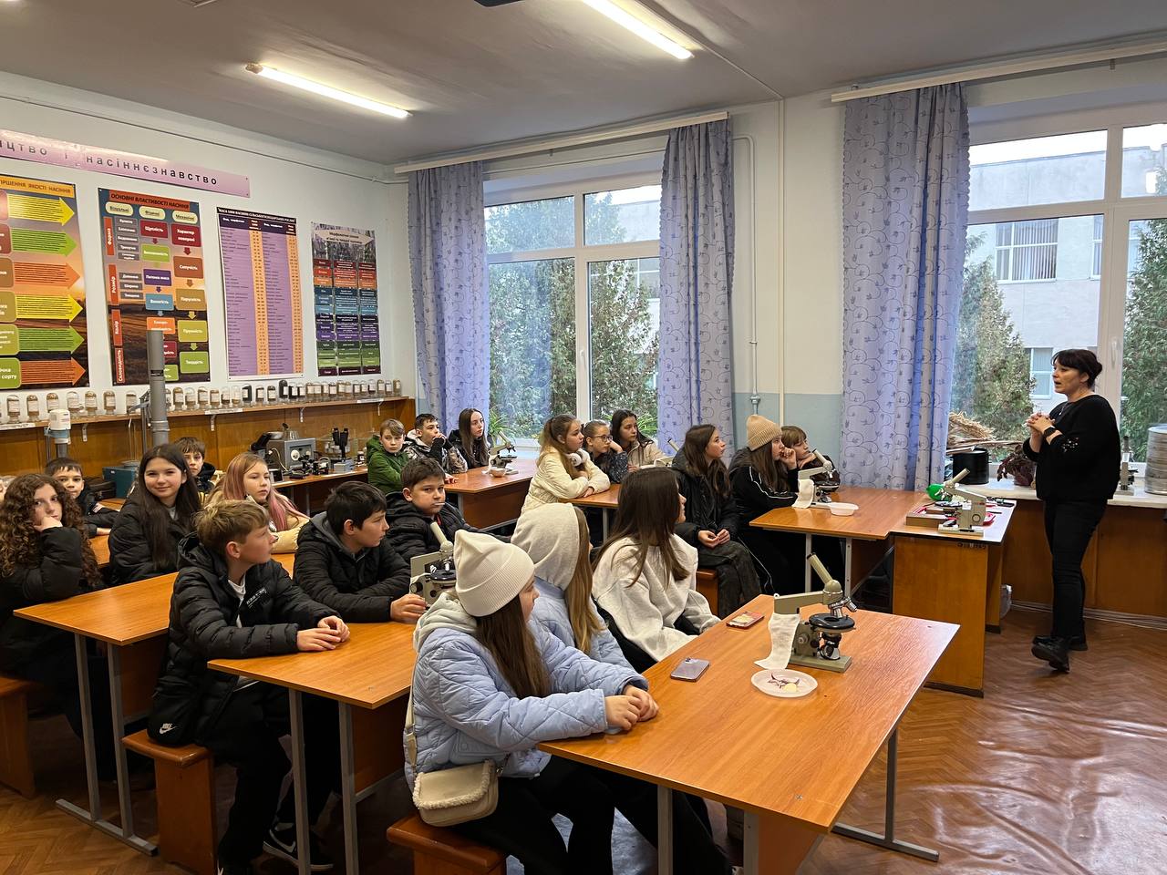 Під час заняття школярі ознайомилися з будовою та функціями клітини як базової структурно-функціональної одиниці всіх живих організмів. Особливу увагу було приділено практичному аспекту: учні самостійно готували тимчасові мікроскопічні препарати, навчалися користуватися мікроскопом і спостерігали клітини рослин. Завдяки цьому вони змогли наочно побачити мікросвіт і краще зрозуміти закономірності будови живих систем.