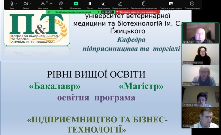 Завідувач кафедри підприємництва та торгівлі ЛНУВМБ ім. С.З. Ґжицького професор Юрій Губені, зокрема, презентував проєкти ОПП «Підприємництво та бізнес-технології», які розробляються та апробуються в ЛНУВМБ ім. С.З. Ґжицького на рівнях бакалавра та магістра. Він ознайомив учасників зустрічі з орієнтовними векторами розвитку структури ОП, запитами стейкхолдерів, результатами першого року впровадження програм. Також професор поділився узагальненими висновками з досвіду формування схожих за змістом ОПП у сусідніх країнах, зокрема Польщі та Чехії.