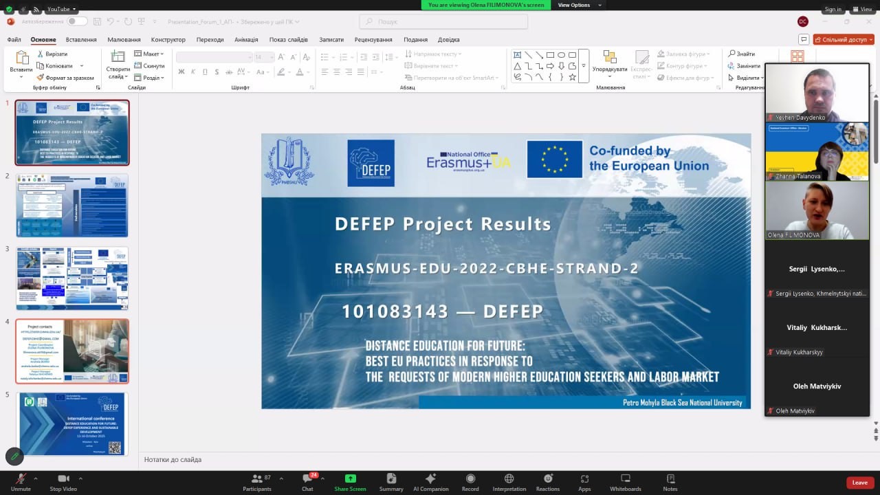 Тема викликала активне й жваве обговорення. Серед порушених питань було чимало тем, дотичних до проєкту DEFEP: інституційна складова, нормативне регулювання, забезпечення якості освіти та академічної доброчесності, стандарти вищої освіти, цифрові інструменти, академічна мобільність тощо.