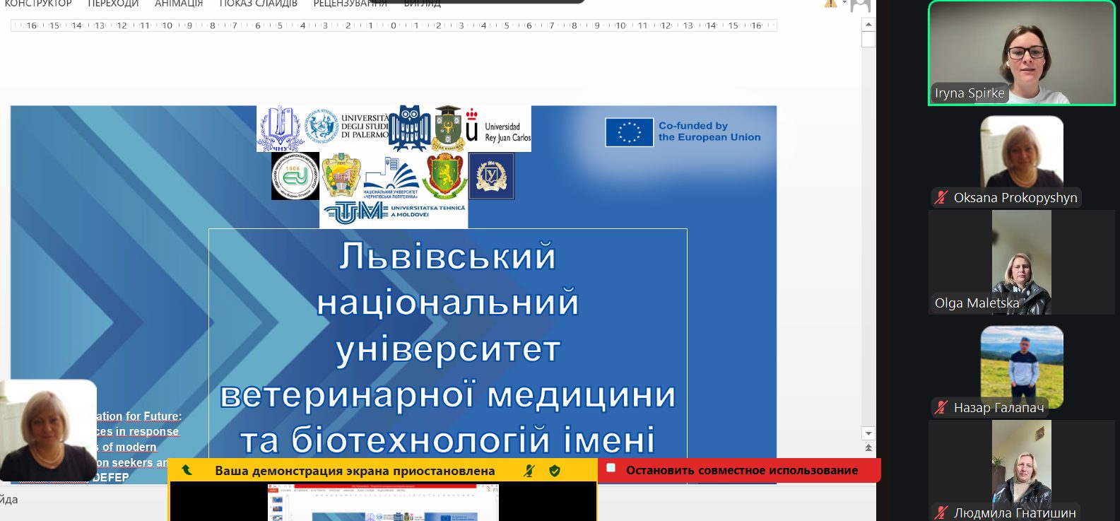 11 грудня 2025 року у стінах Львівського національного університету ветеринарної медицини та біотехнологій імені С.З. Ґжицького відбулася робоча зустріч команди проєкту DEFEP із головним координатором Оленою Філімоновою. Під час зустрічі було обговорено формування фінального звіту, підбито підсумки реалізації запланованих заходів та детально обговорено досягнуті результати. Учасники зустрічі проаналізували виконання ключових етапів проєкту, а також рівень їх імплементації у навчальний процес університету.